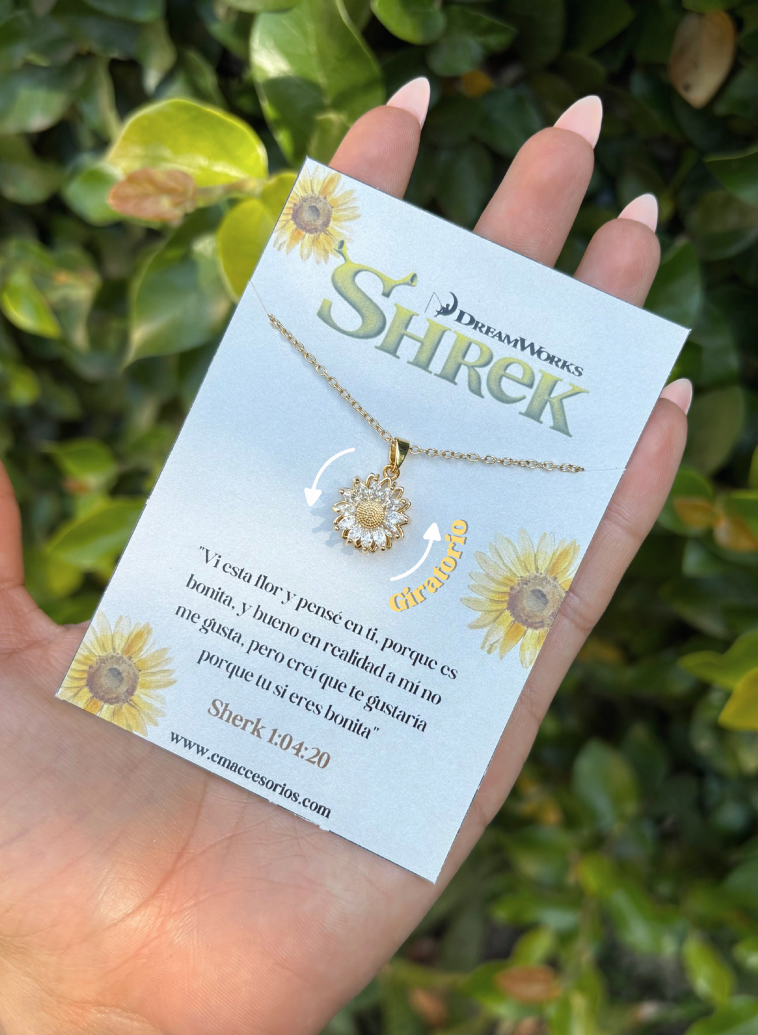 Cadena de acero quirúrgico y dije de girasol giratorio anti estrés de zirconias con mucho brillo.